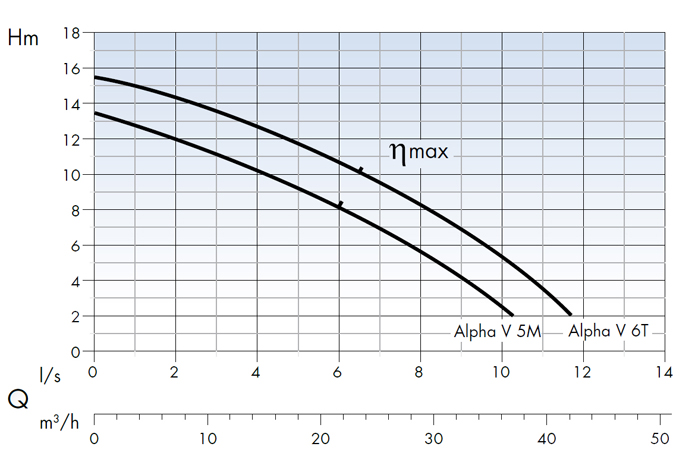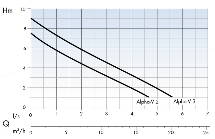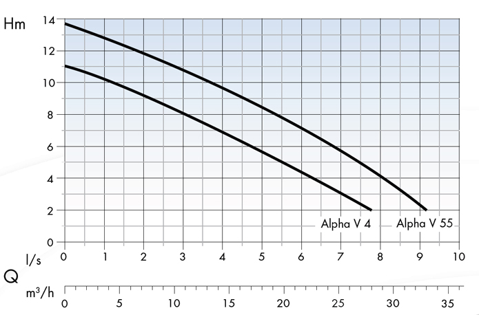 Фекально-дренажные погружные насосы серии ALPHА V в отличие от семейстсва дренажных насосов DRENO ALPHA обладают универсальностью применения с точки зрения характеристик и свойств перекачиваемых жидкостей. Благодаря наличию свободновихревого осаженного рабочего колеса серия фекальных насосов DRENO ALPHА V может эффективно применяться для перекачивания жидкостей, содержащих механические частицы габаритом от 35 до 45мм в зависимости от модели, а также использоваться для перекачивания сильно загрязненных дренажных, канализационных, фекальных, смешанных грязных вод в диапазоне эффективных производительностей от 3 до 25 м3/ч. Максимальная производительность фекальных насосов данной серии составляет 45 м3/ч. Максимальный напор-15 м.в.с. Семейство погружных фекальных насосов ALPHА V представлено моделями с электрической потребляемой мощностью от 0,77кВт до 2,6кВт.