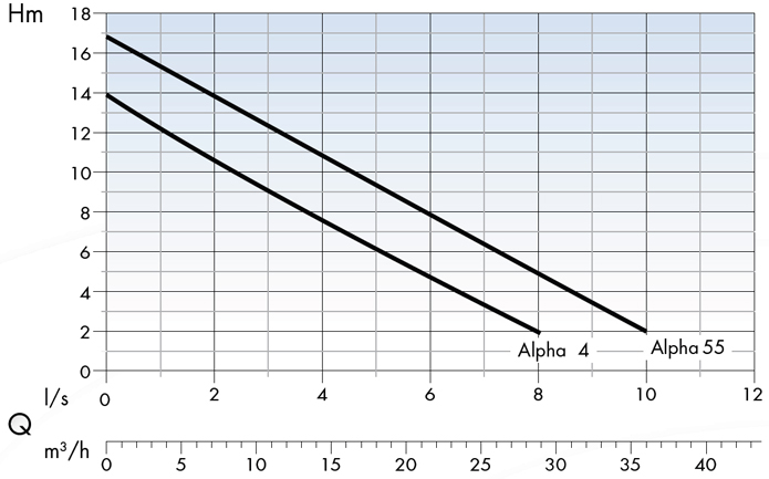 Рабочие кривые насосов Dreno Pompe серии ALPHA, модель C.4-55, 2 полюса