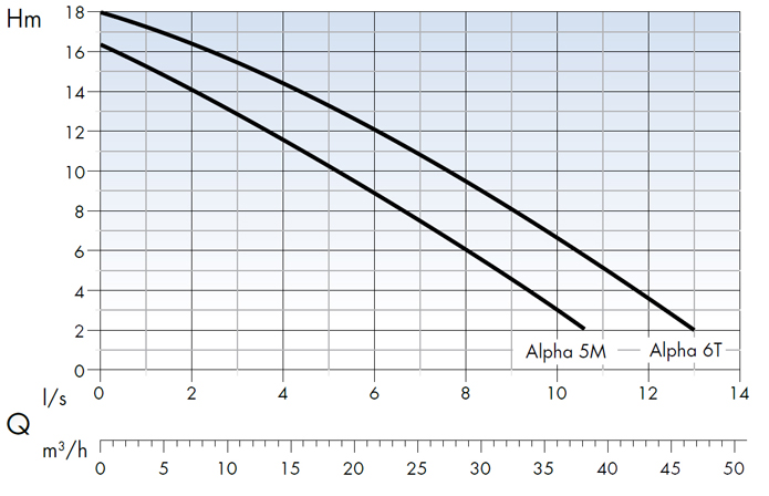 Рабочие кривые насосов Dreno Pompe серии ALPHA, модель 5M-6T, 2 полюса
