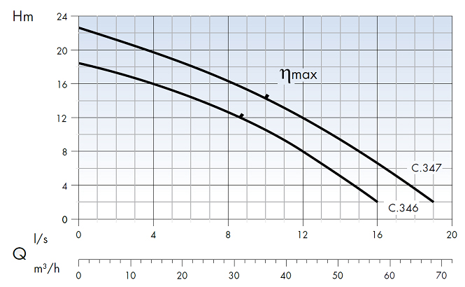 Рабочие кривые насосов Dreno Pompe серии V, модель C.346-347, 2 полюса