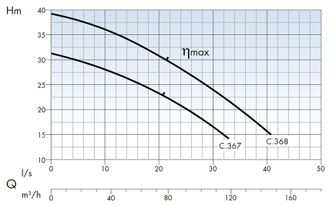 Рабочие кривые насосов Dreno Pompe серии V, модель C.367-368, 2 полюса