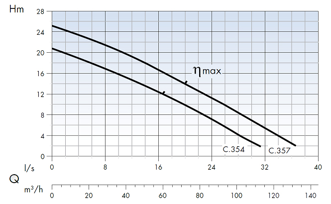 Рабочие кривые насосов Dreno Pompe серии V, модель C.354-357, 2 полюса